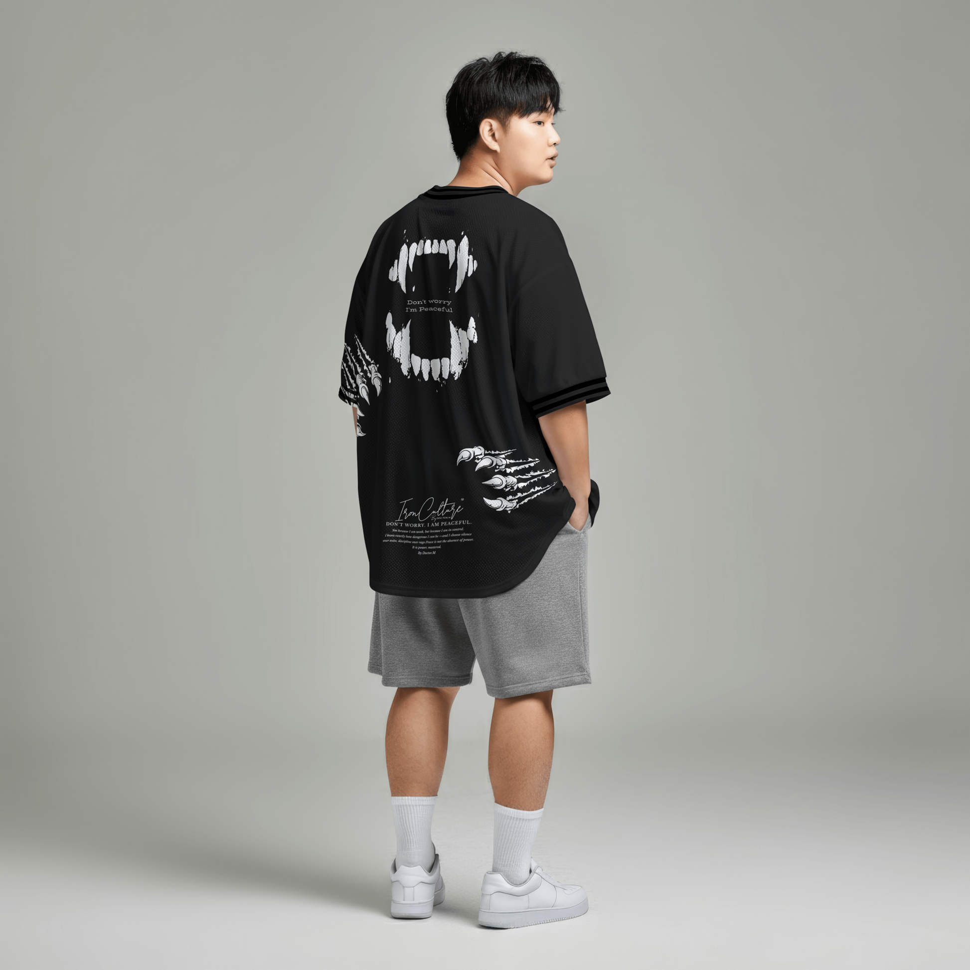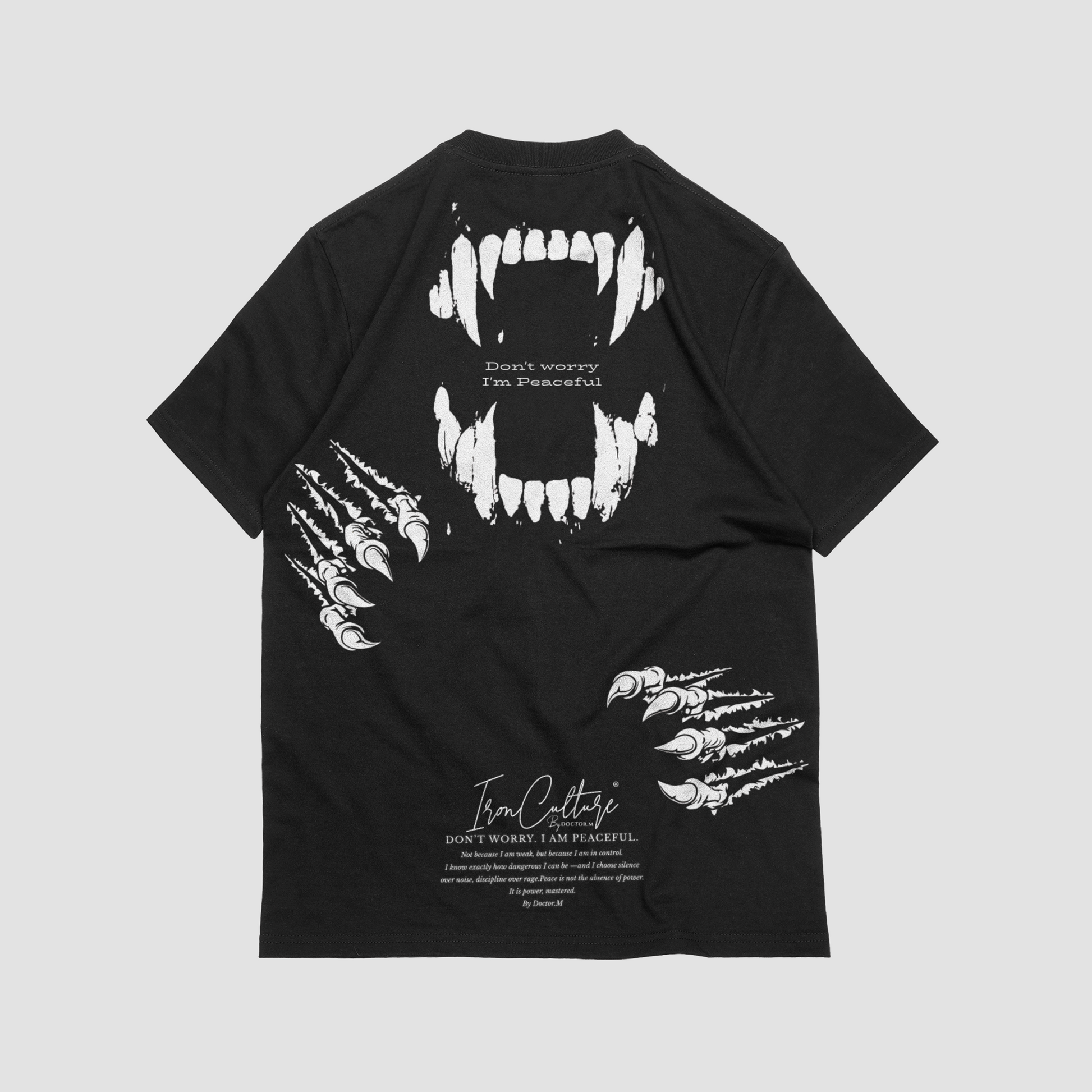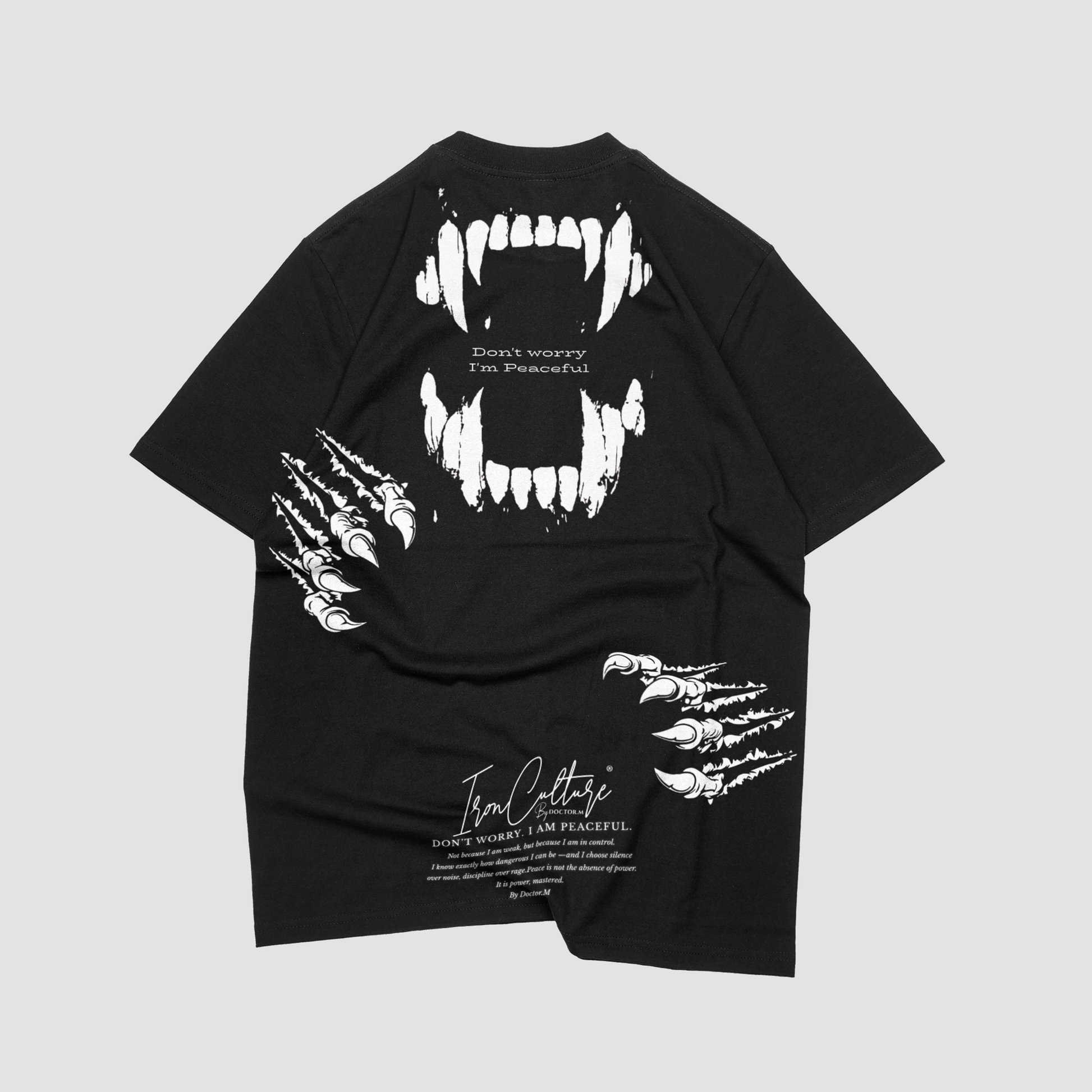 The IronCulture® “Don’t Worry, I’m Peaceful” Oversized Tee represents restrained power and disciplined aggression. The bold backprint combines sharp, aggressive visuals with a calm, ironic message — a reminder that real strength doesn’t need to be loud.