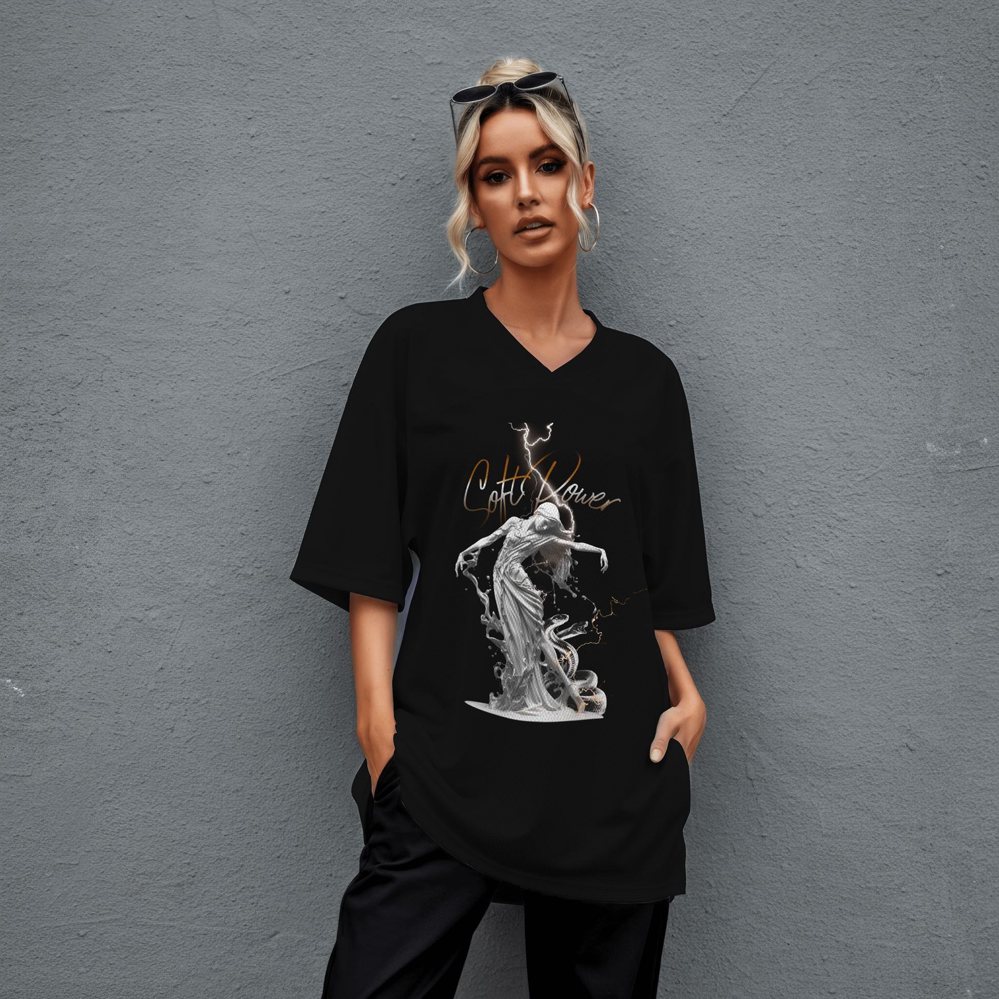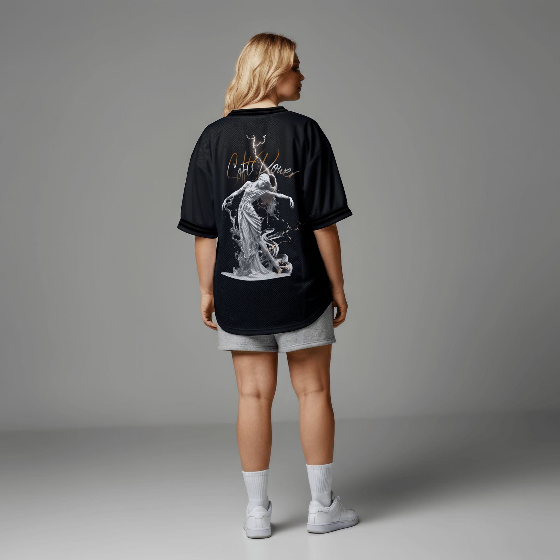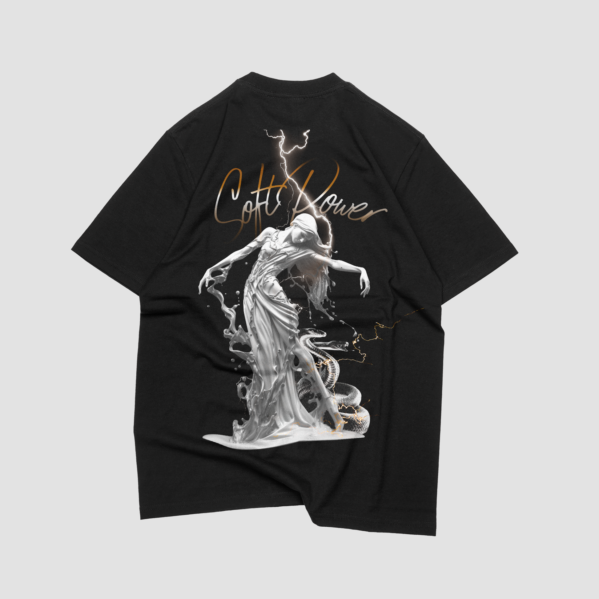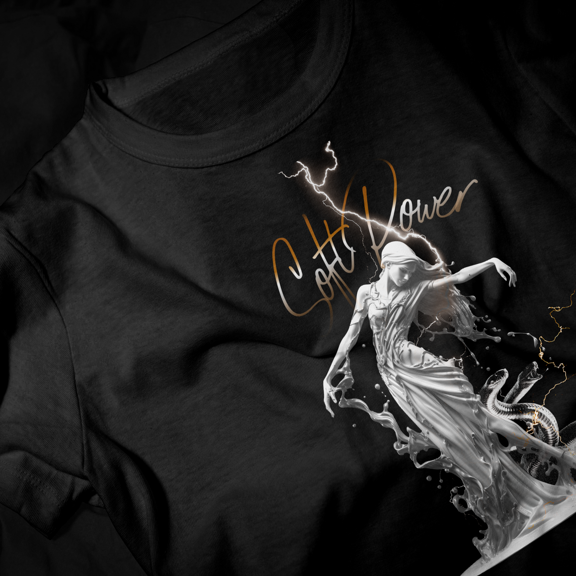 The Soft Power T-Shirt from the IRON WOMEN collection represents strength expressed through control, grace, and inner force. The artwork blends feminine elegance with raw energy — movement, lightning, and balance coming together as one.