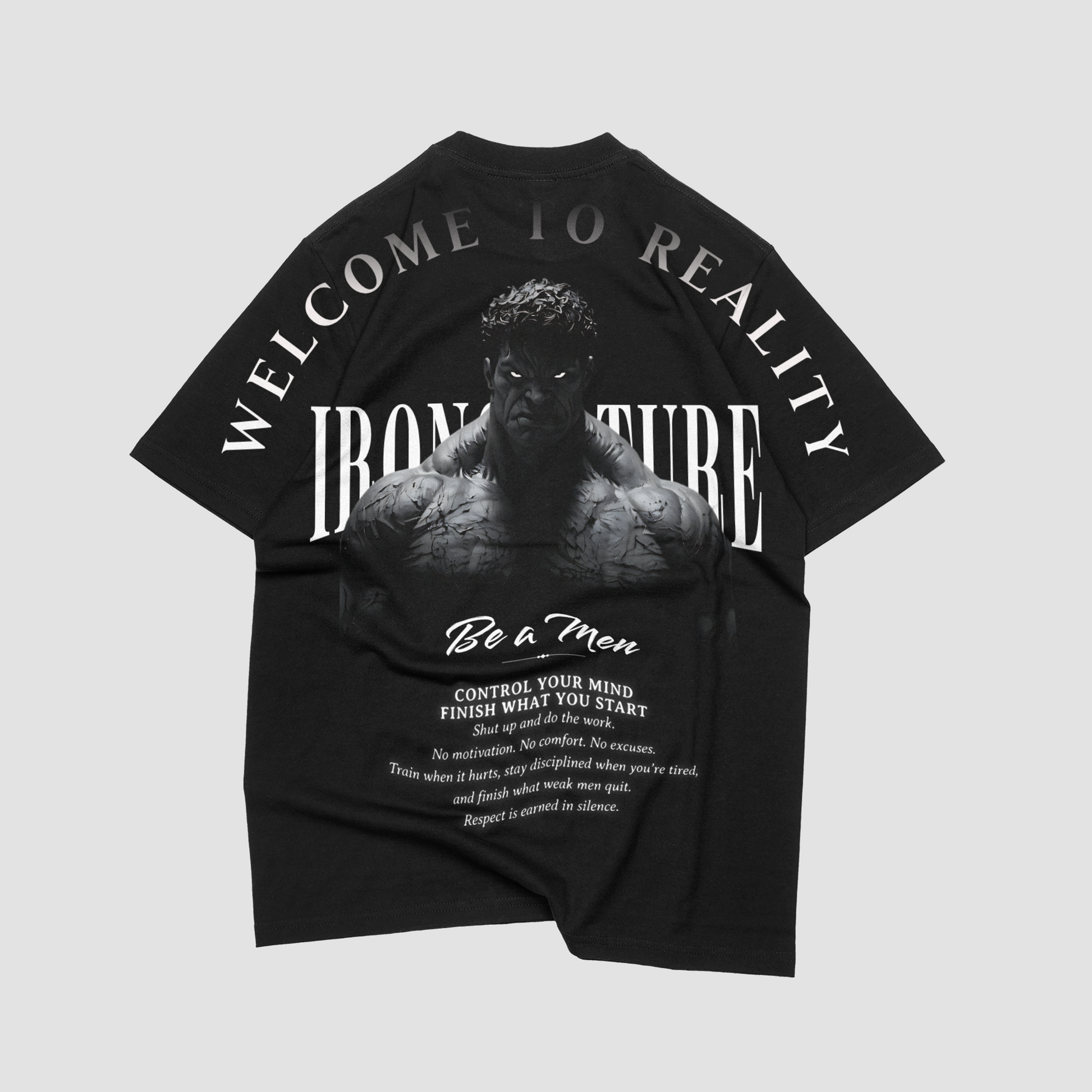 IronCulture® “Welcome to Reality” Oversized T-Shirt – Be a Man Statement Backprint
